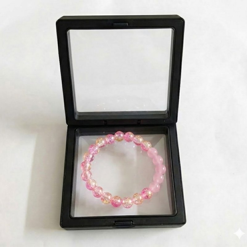 Be the first to review “Pink Crackle Glass Bead Bracelet ( with box )”