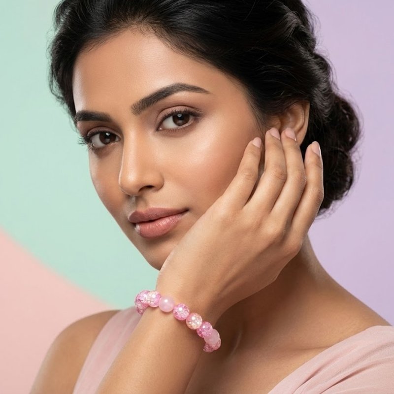 Add a touch of sparkle to everyday style with this pink crackle glass bead bracelet, designed for anyone who loves cute, colorful, and eye-catching accessories. Made with vibrant crackle glass beads that catch the light beautifully, this bracelet delivers a soft aesthetic charm while staying comfortable with its flexible elastic fit. Perfect for daily wear, casual outfits, or stacking with other bracelets, it brings a pop of personality to any look. Lightweight, stylish, and versatile, it also makes a sweet gift for girls, teens, and women who appreciate pretty beaded jewelry.
