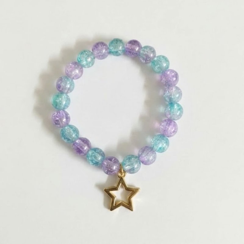Purple and Blue Crackle Bead Stretch Bracelet with Star Charm ( with box )