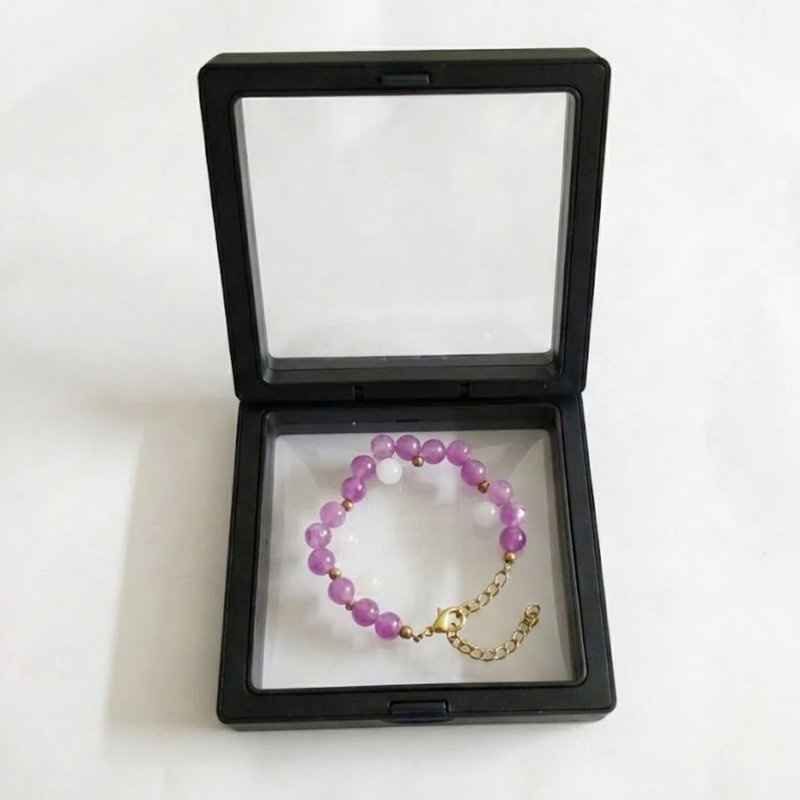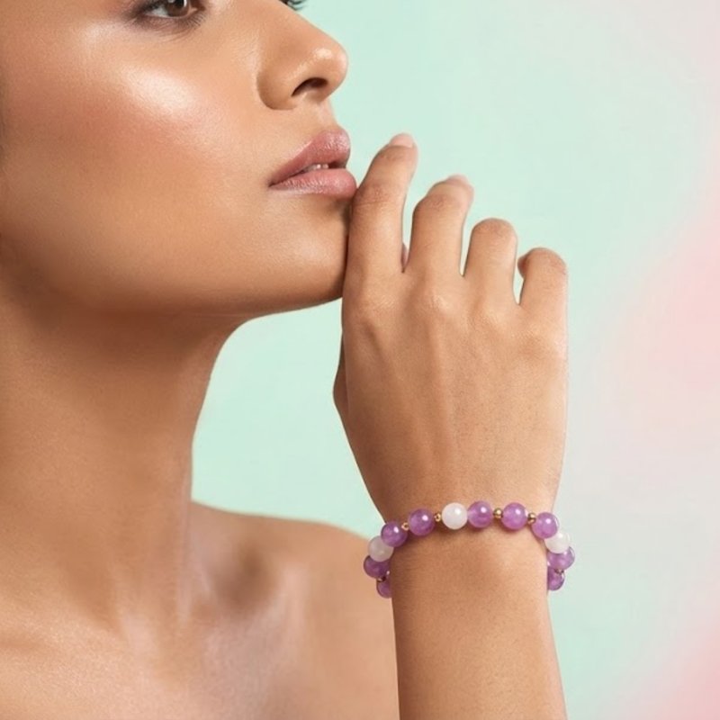 ? Purple and white beads create a soft, elegant, and trendy look